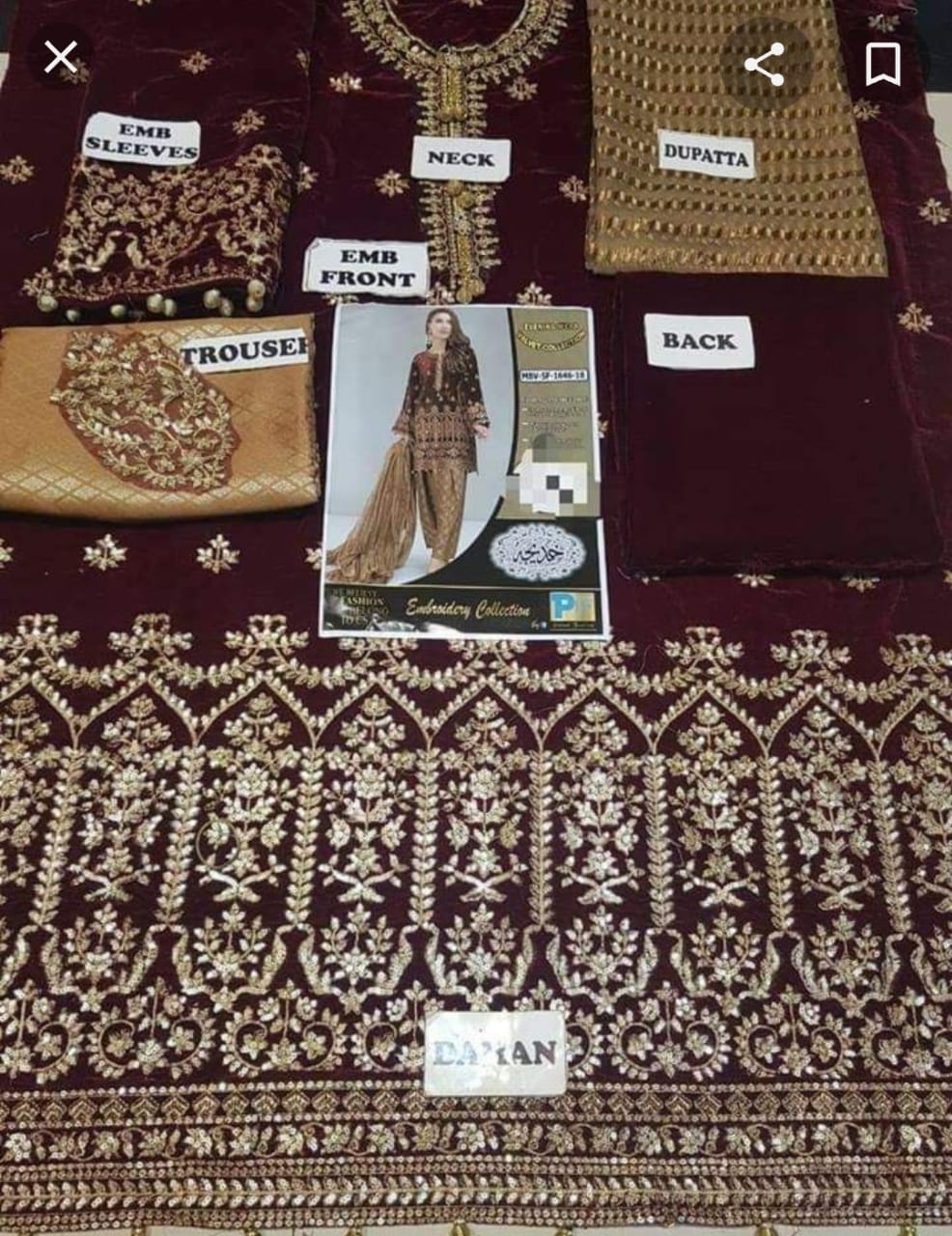 Embroidered Velvet Sleeves (Dori-work & Hanging Balls)
